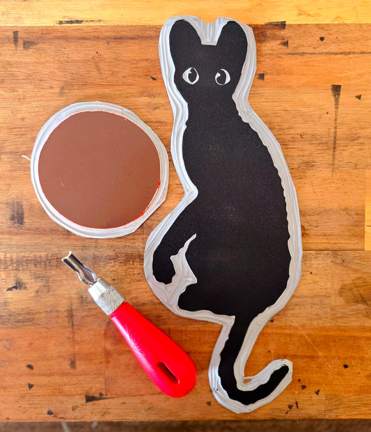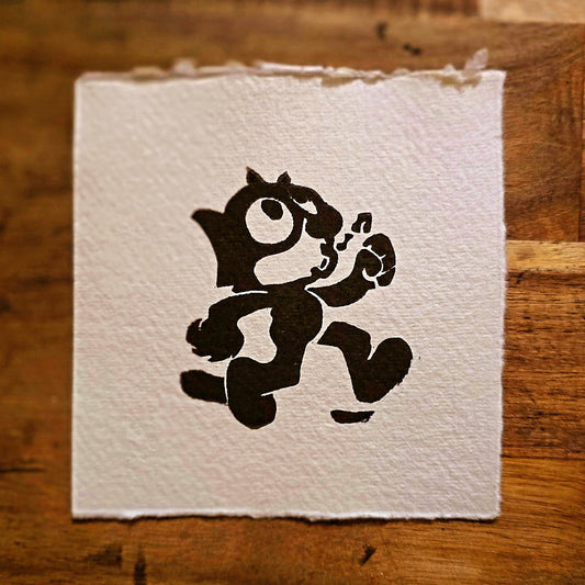 Felix the Cat Mini Print | Original Linoprint | Black Cat Print
