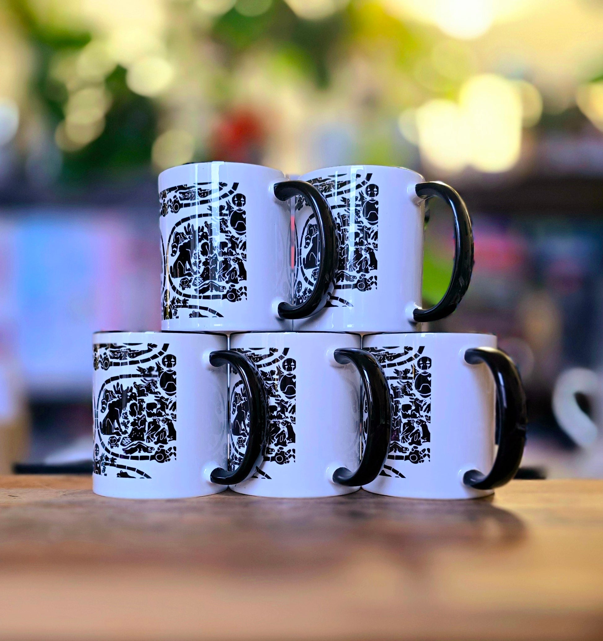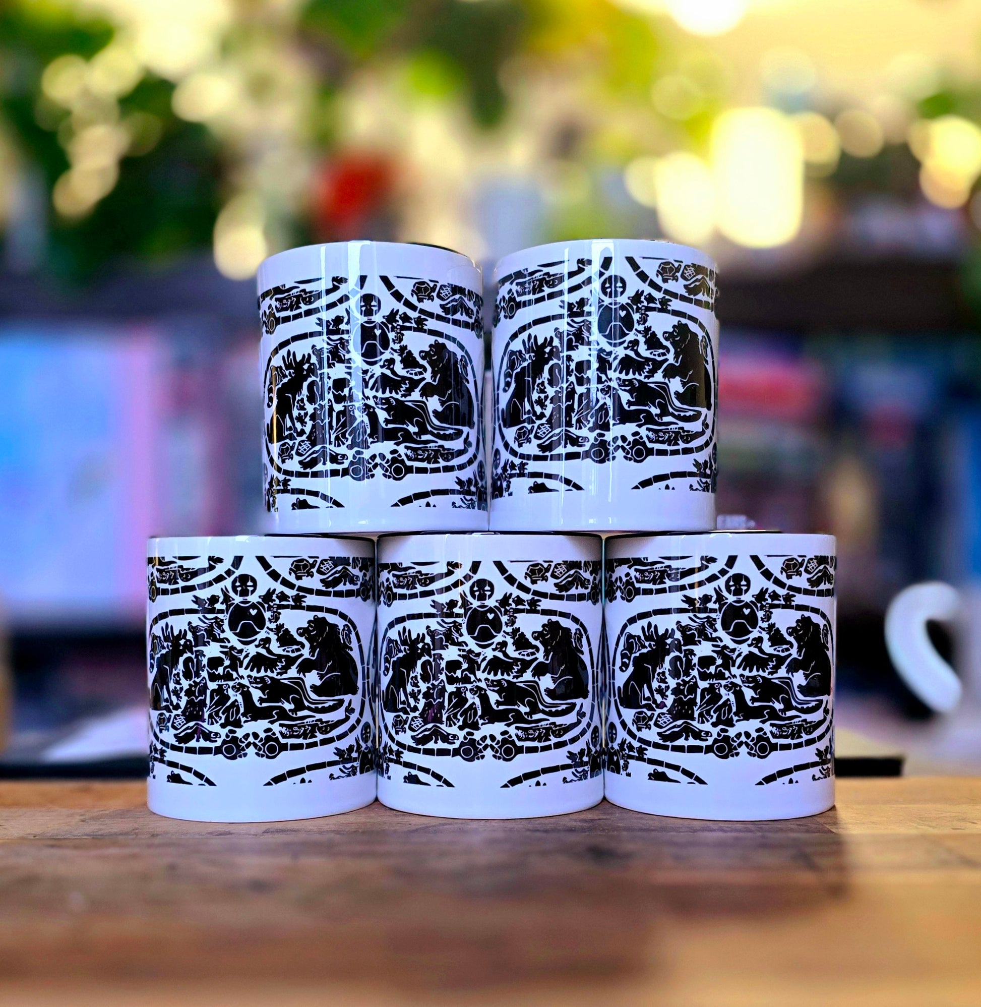 Black and White 'The Wild Robot' mug. An original lino print, cut by me, scanned and printed onto a ceramic mug.