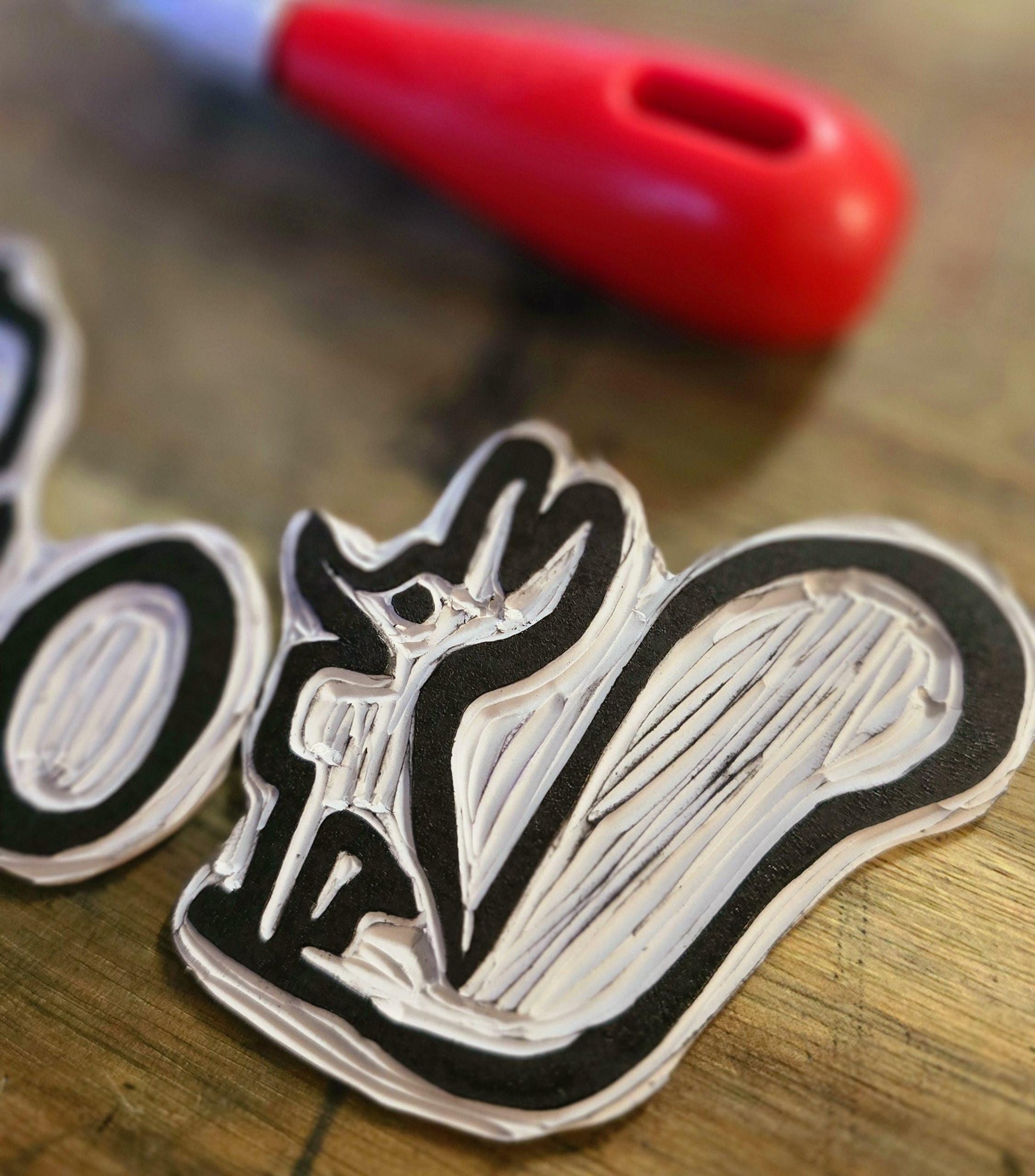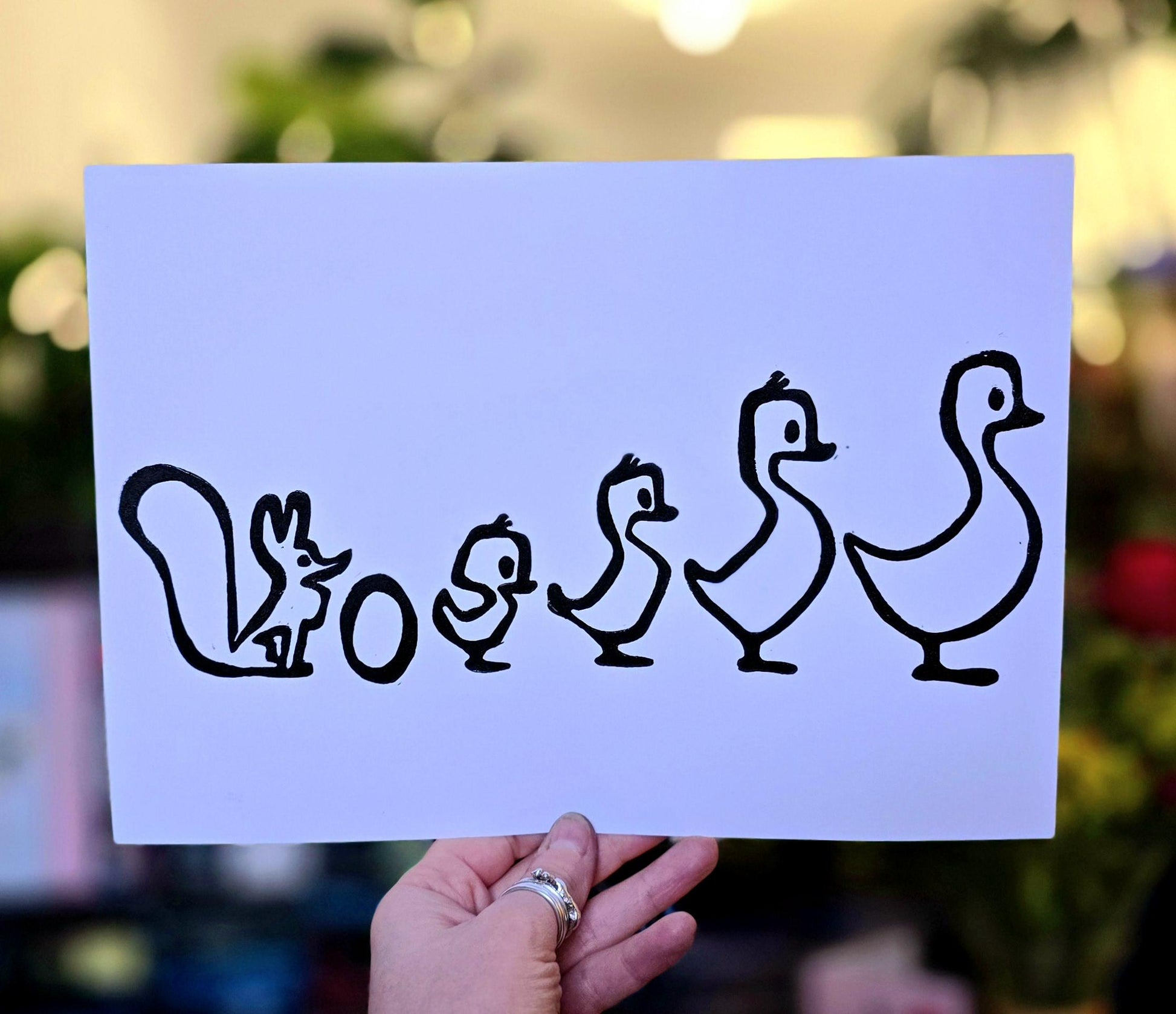 Original handcut linoprint of The Wild Robot. Every single one is hand printed by me, so each one will be unique.